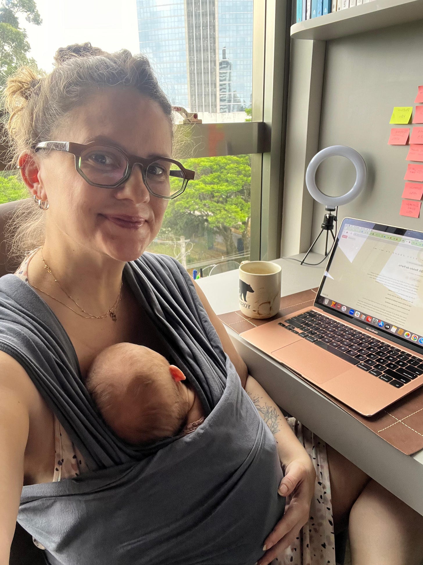 Alguns meses atrás, participei de um podcast em que a entrevistadora se mostrou impressionada ao constatar o tanto que consegui elaborar sobre a maternidade mesmo antes de ser, oficialmente, mãe. Na verdade, não antes de ser mãe, mas antes de ter um bebê no colo. Passar por duas perdas antes de ter uma terceira gestação, graças a Deus, bem-sucedida, teve a sua parcela de ressignificação e um espaço de tempo para muita elaboração sobre o que não cabia mais, pra poder caber um bebê. E o principal que não cabia era meu trabalho no mundo corporativo.